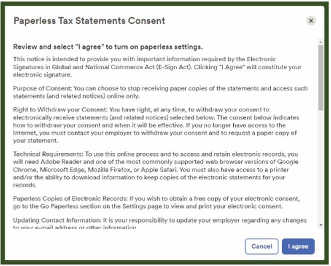 Step 5: Review the Go Paperless Consent. Then click I Agree.